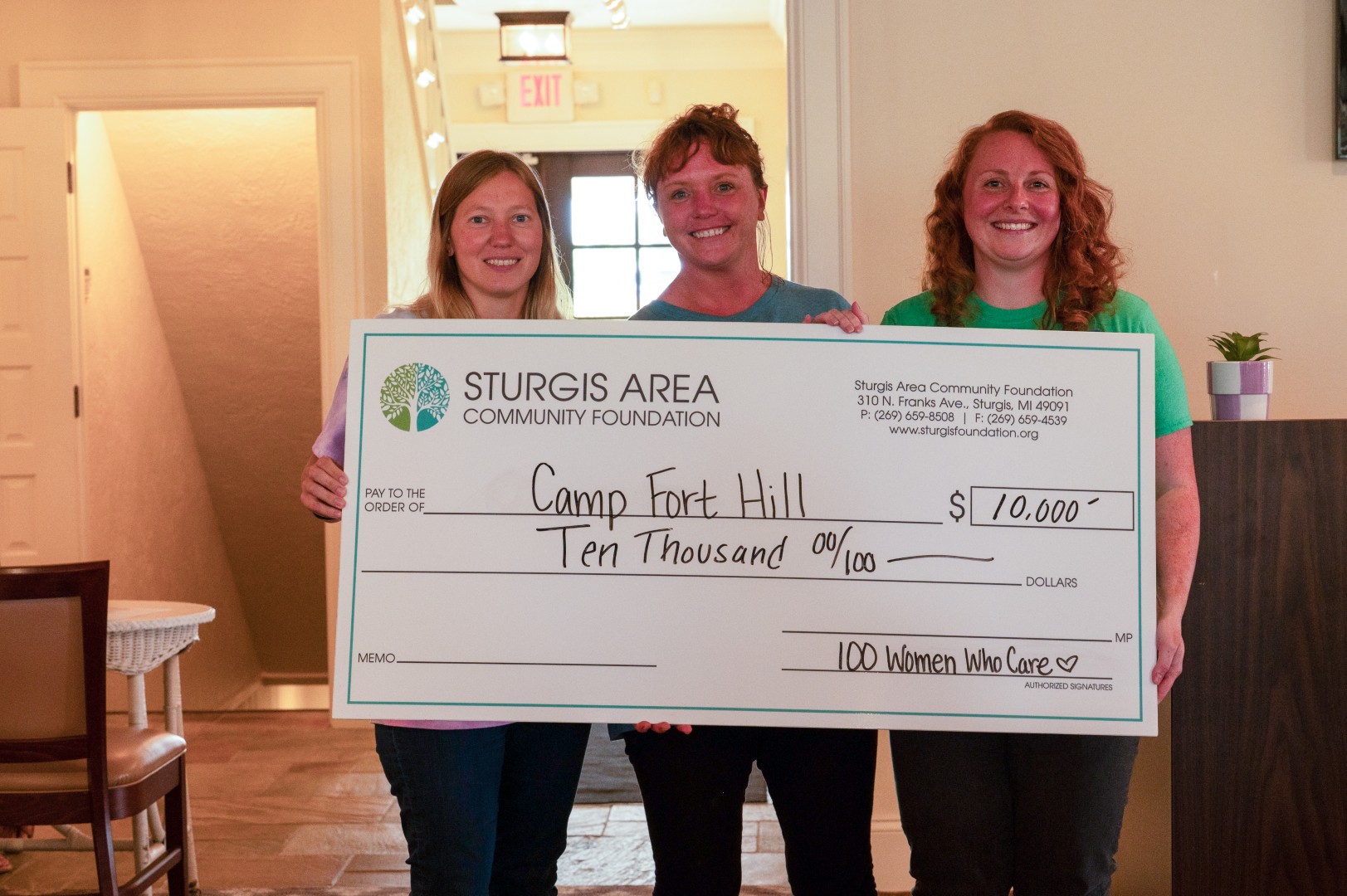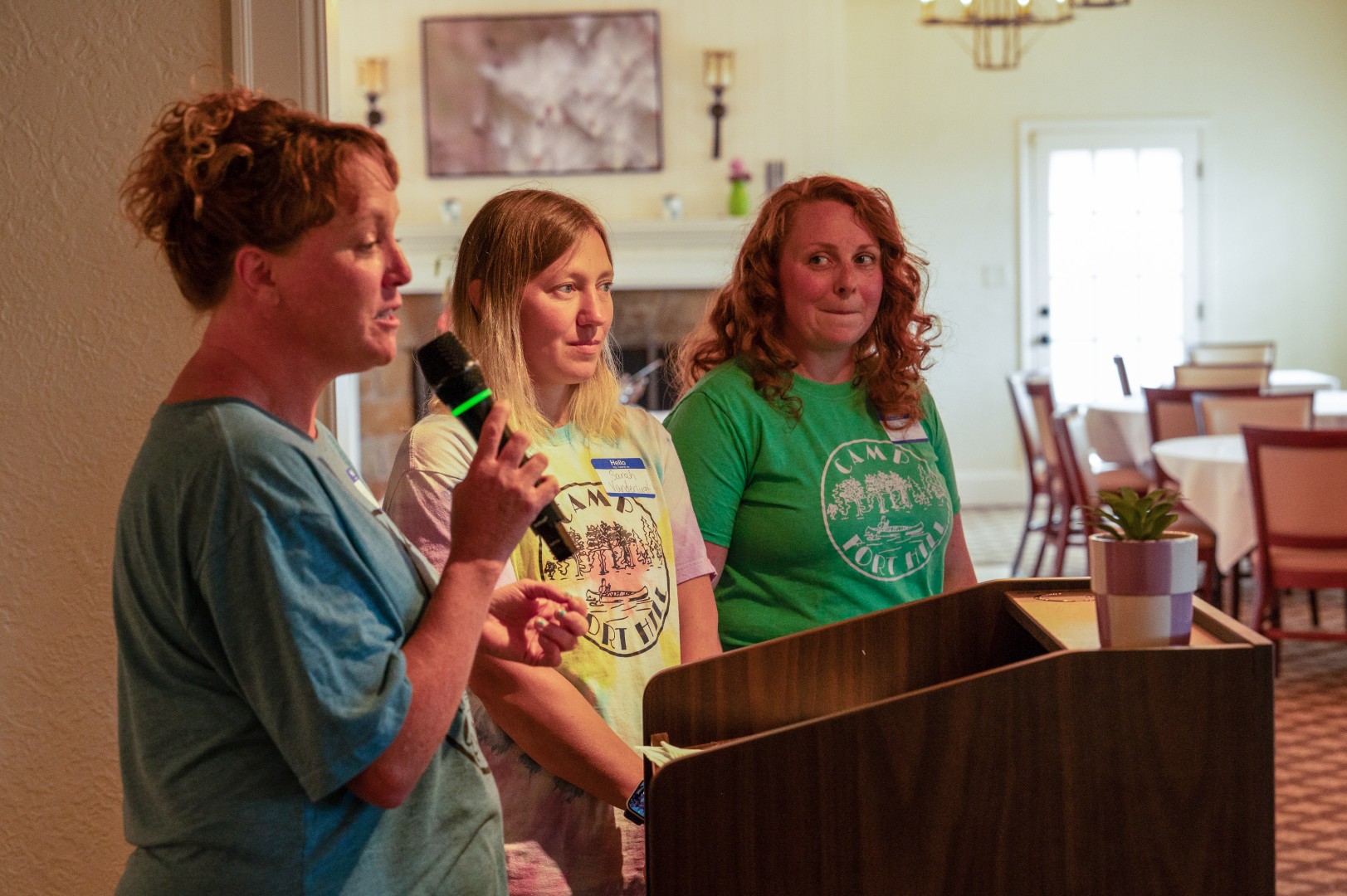 Camp Fort Hill Presenters: Sarah Vanderlught (Day Camp Director), Meggie Thompson (Camp Director), and Mary Franks (Board President)